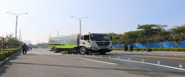 洗掃作業(yè)和灑水作業(yè)中,駕駛員們“眼觀六路”、技能嫻熟,在展示日常保潔作業(yè)的基礎上,更是在“S彎道”和模擬公交站臺等處精準完成了高難度操作,贏得現(xiàn)場觀眾的陣陣喝彩。人行道及慢車道沖洗比賽中,選手們分工明確、使出“繡花”功夫,經過刷洗的護欄與路面煥然一新,盡顯環(huán)衛(wèi)保潔作業(yè)的科學化、精細化.